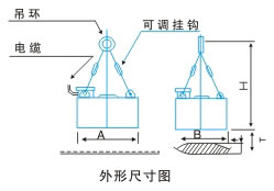 本系列產品為長期工作的電磁鐵除鐵器,懸掛系列配有可調掛鉤,能方便地調整架設高度。在除鐵寬度方向(B尺寸)上產生大致一樣的磁場,因此,適應從料層不厚、堆比重較輕的谷類、刨木花、甘蔗渣、剪切原料、化工原料等特料中除去鐵磁場物件。
